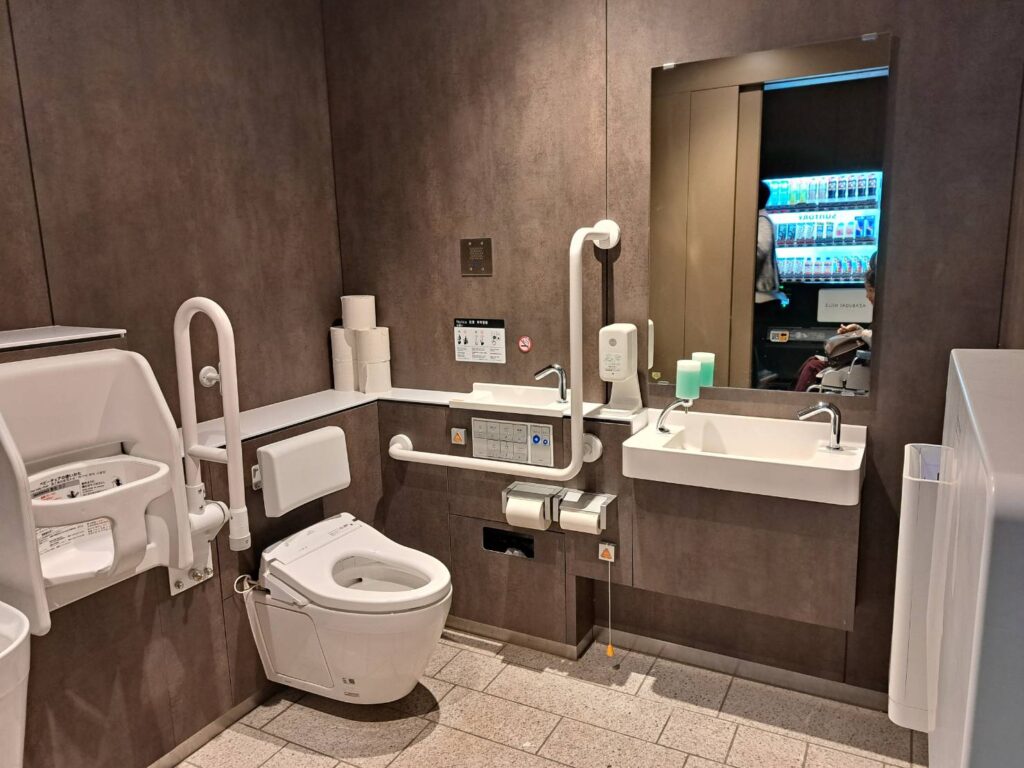 ガーデンプラザA地下1階の多目的トイレです。やはりキレイですね。適当な広さで設備も十分です。