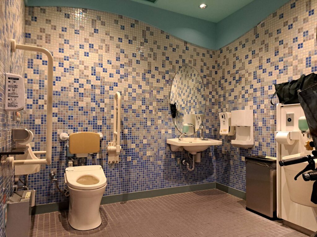 This is the multipurpose restroom in Mermaid Lagoon. It is quite spacious not only for wheelchairs but for strollers because there are many attractions for small children in the area.