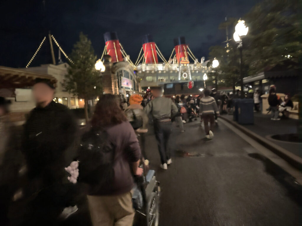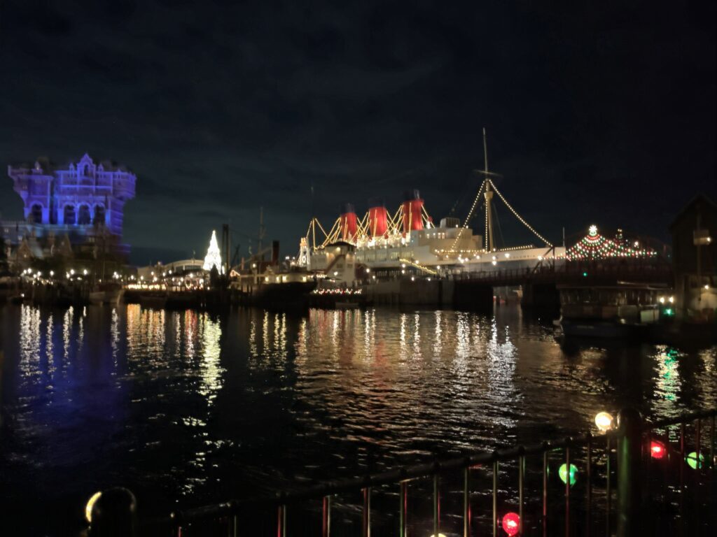 We headed to the central sea area which is the venue for the spectacular night parade, “Believe! Sea of Dreams,” finding no room in a large crowd around the sea. However, a cast member kindly ushered us to the wheelchair priority area with a light shining at our feet. The area is located on the second floor on the west side of the sea. We enjoyed a fantastic view from there!