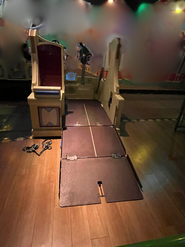 We returned to Toy Story Mania! after the parade. This ride is wheelchair accessible with a specially designed slope. You can play the shooting game in your wheelchair.