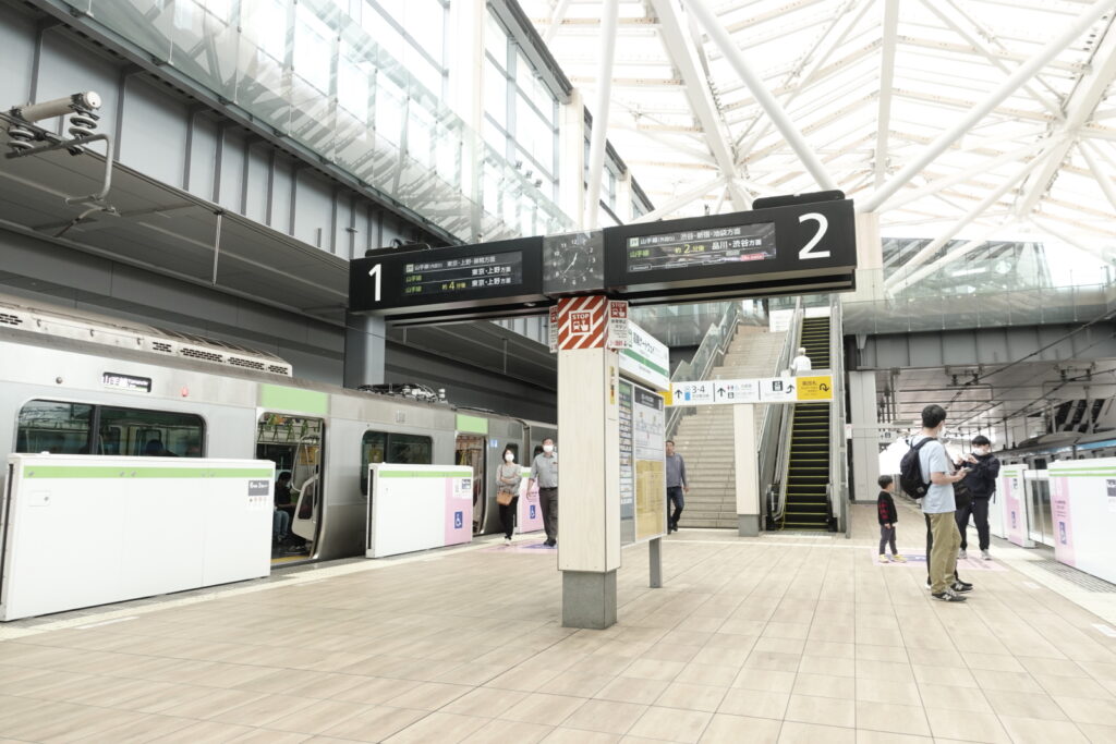 Let’s start with Takanawa Gateway Station. It’s about a 10-minute train ride from Tokyo Station. The platforms are equipped with platform screen doors which add security.