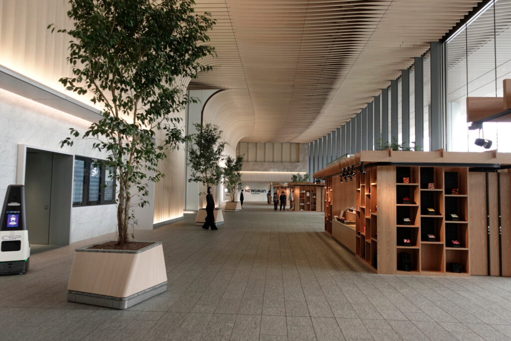 There is a rest area in the passageway that connects the North and South ticket gates. The space feels open and airy. It looked so comfortable that people seemed to forget they were still inside the ticket gates.