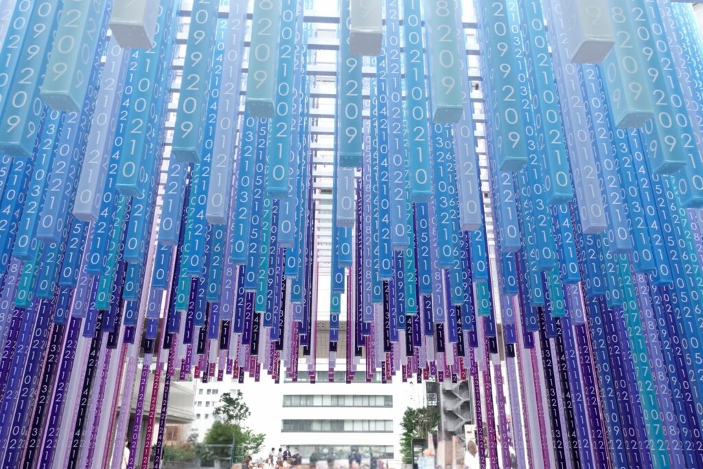 One of the most well-known installations at the time in Gateway Park was an art piece titled “100 colors path” by French architect and designer Emmanuelle Moureaux. Shaped like a tunnel you can walk through, the series of lines forms a gradient of 100 colors—from a front line engraved with “2025” to the farthest one engraved with “2124”—representing the passage of time 100 years into the future. This installation was on display until the 21st of July 2025.